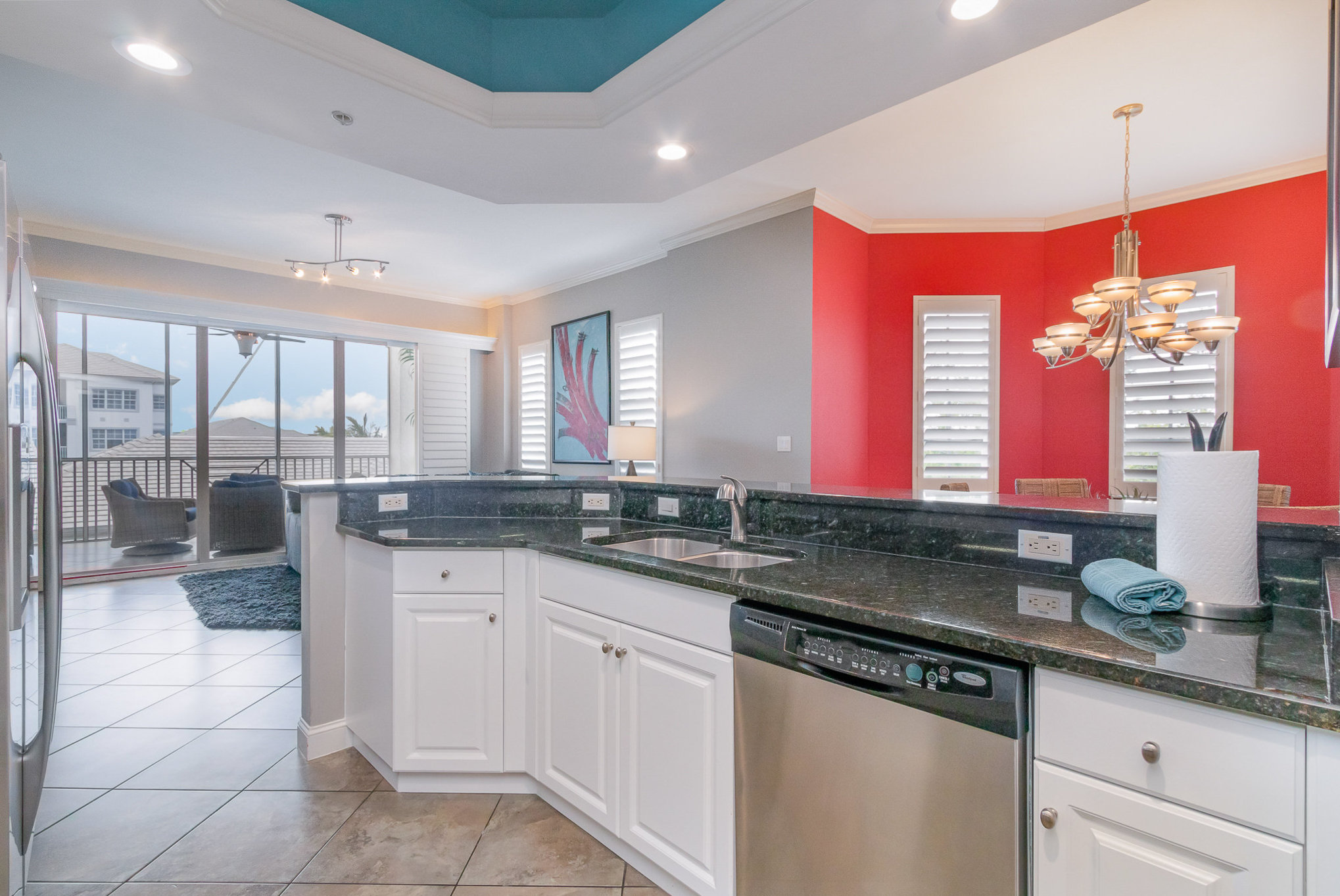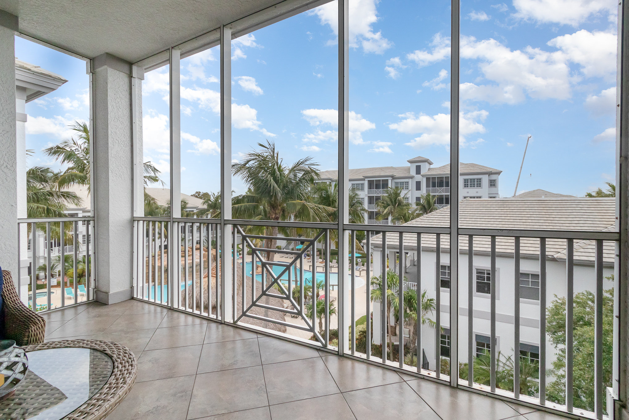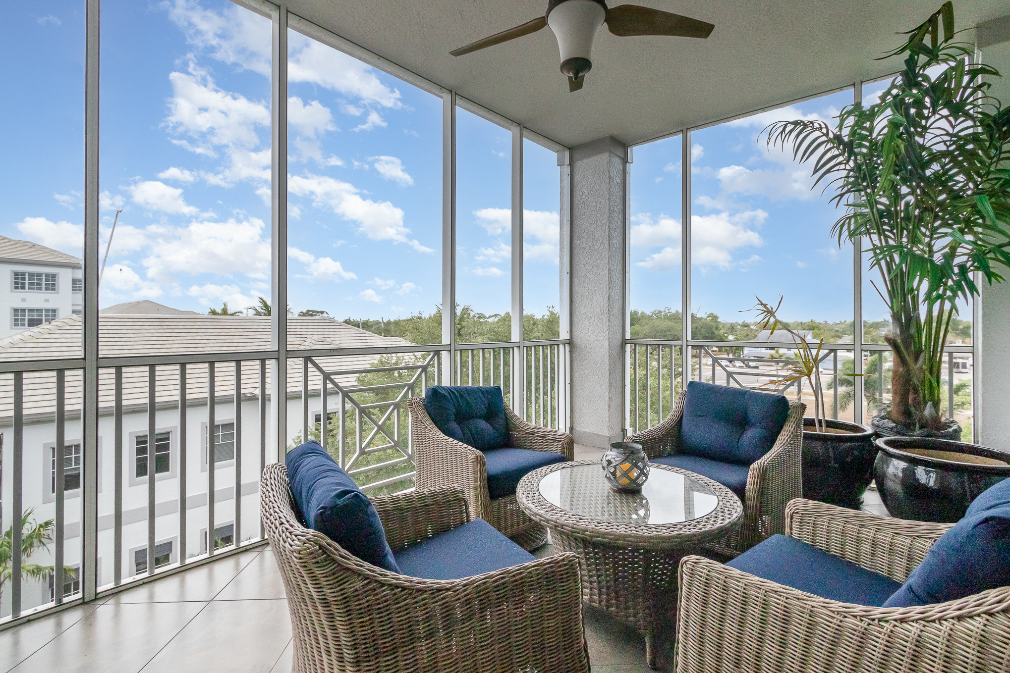 Exterior enclosed lanai wonderful for early mornings/late nights.